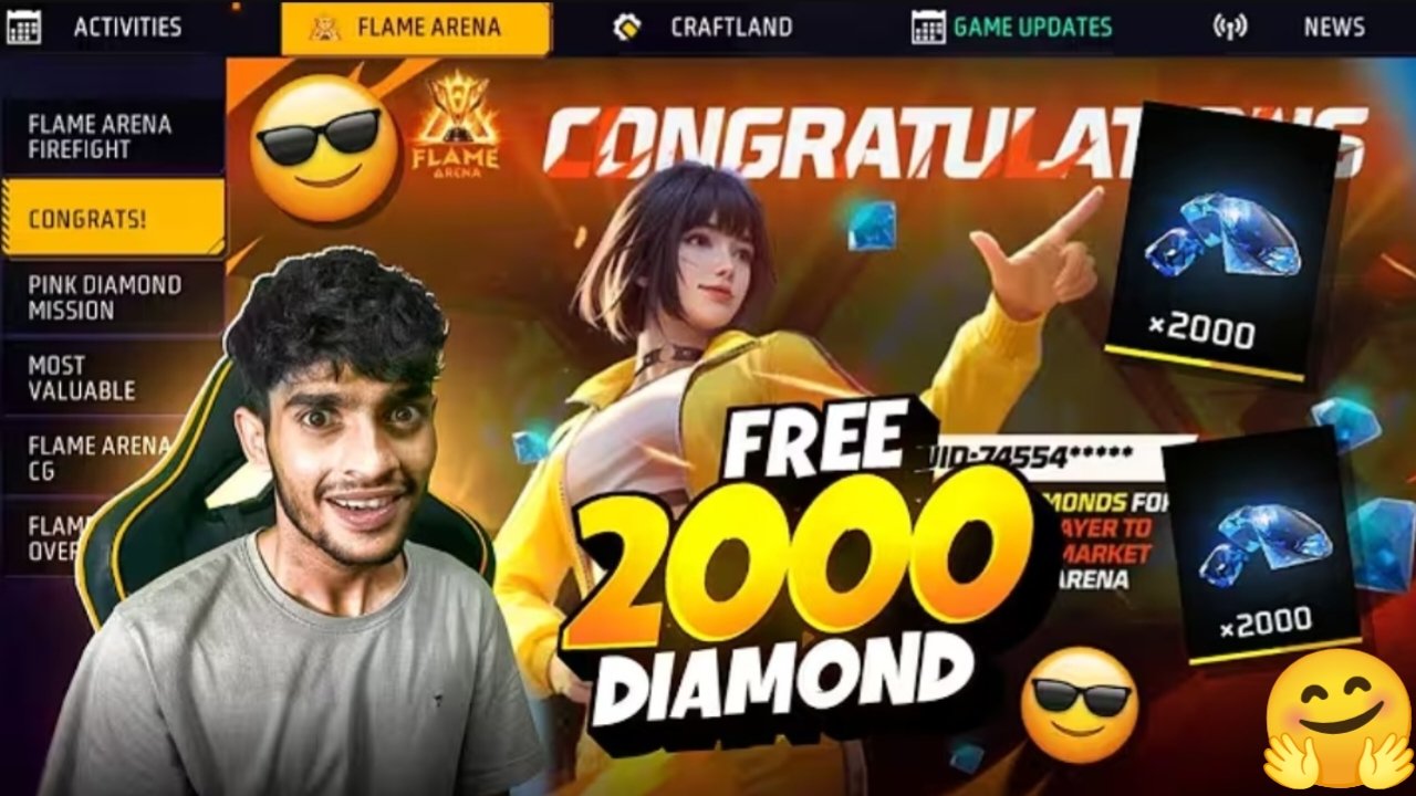 Free Fire 2000 Diamonds Free: गेमर्स के लिए बड़ा मौका, 2 मिनट में पाएं फ्री डायमंड!